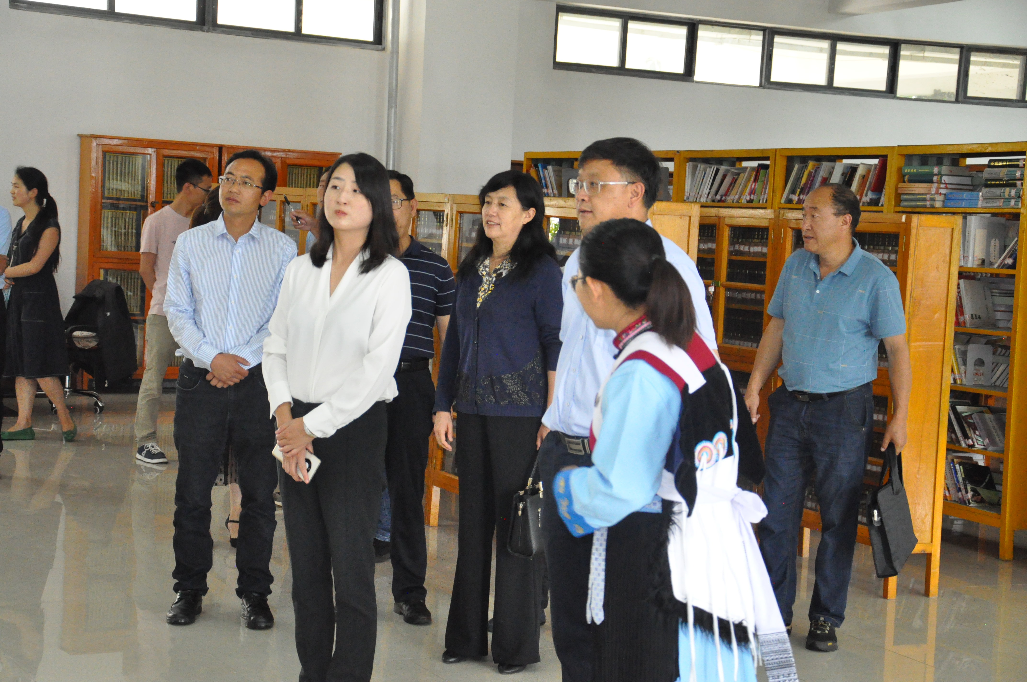 魏妮娅一行首先到图书馆,详细听取了学校修建性详细规划,还参观民族团结进步示范馆;在参观学校高山植物标本馆时,听取了丽江地质地貌形成过程、高山植物标本的特征等,了解丽江植物种群及民族多样性。