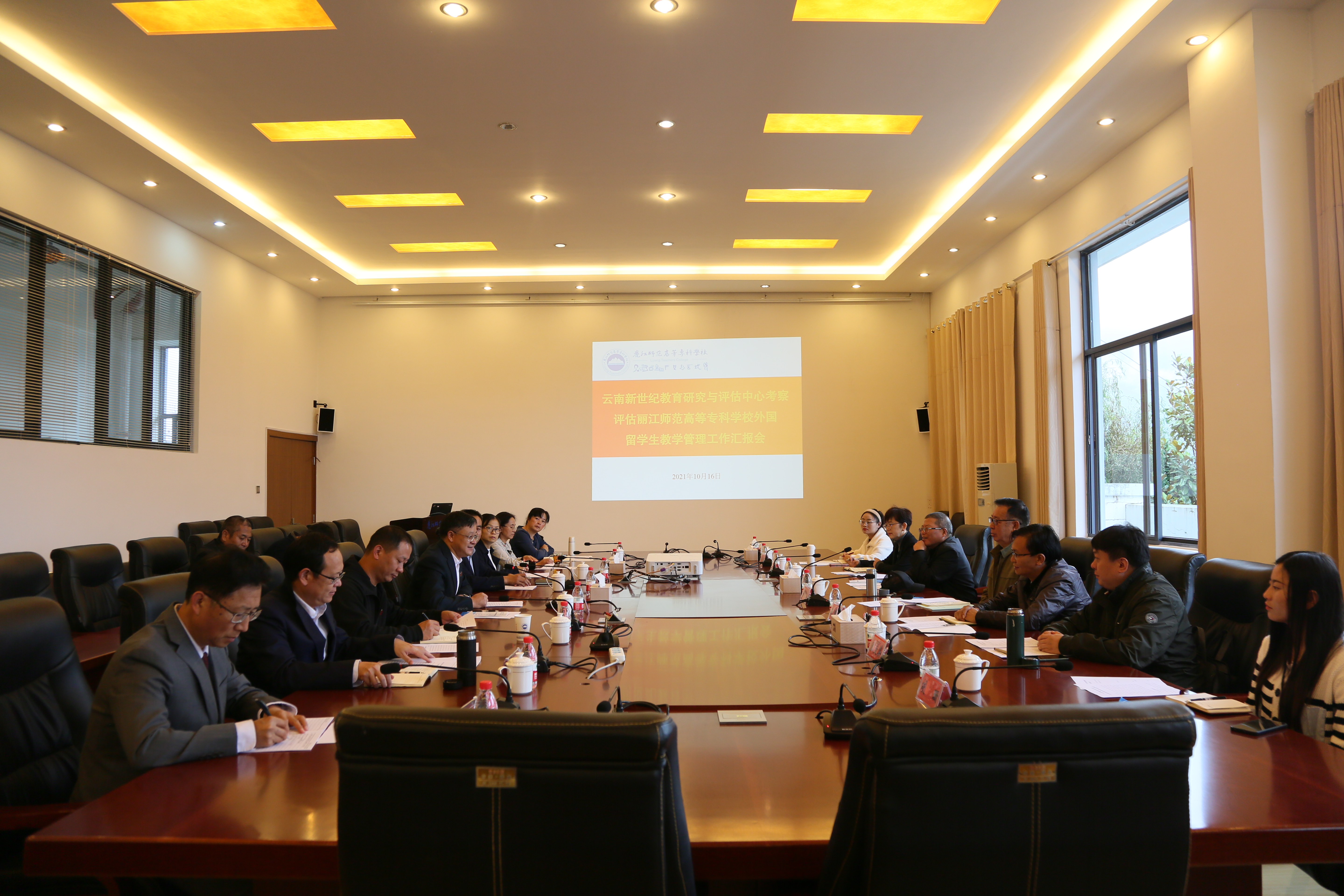 会后专家组一行在校长毕天云、副校长张兰胜及相关部门和学院负责人的陪同下,查看了留学生实验实训场所,到学校图书馆、高山植物标本馆、艺术楼、实训楼开展了调研,查阅了台账资料。深入留学生课堂听课。与分管校领导、留学生教学管理相关部门和学院负责人、任课教师以及在校留学生进行了座谈。对学校留学生教学管理工作进行了全面评估。