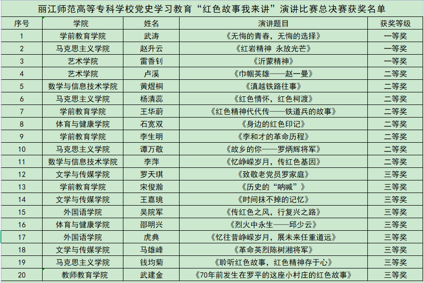 “红色故事我来讲”活动持续推进丽师党史学习教育往深里走,往心里走,往实里走,弘扬革命先烈的丰功伟绩,继承革命先辈的优良传统,赓续红色血脉,引导青年学子增强对党史学习教育重要意义的认识,为中华民族伟大复兴接续奋斗汲取无穷力量。