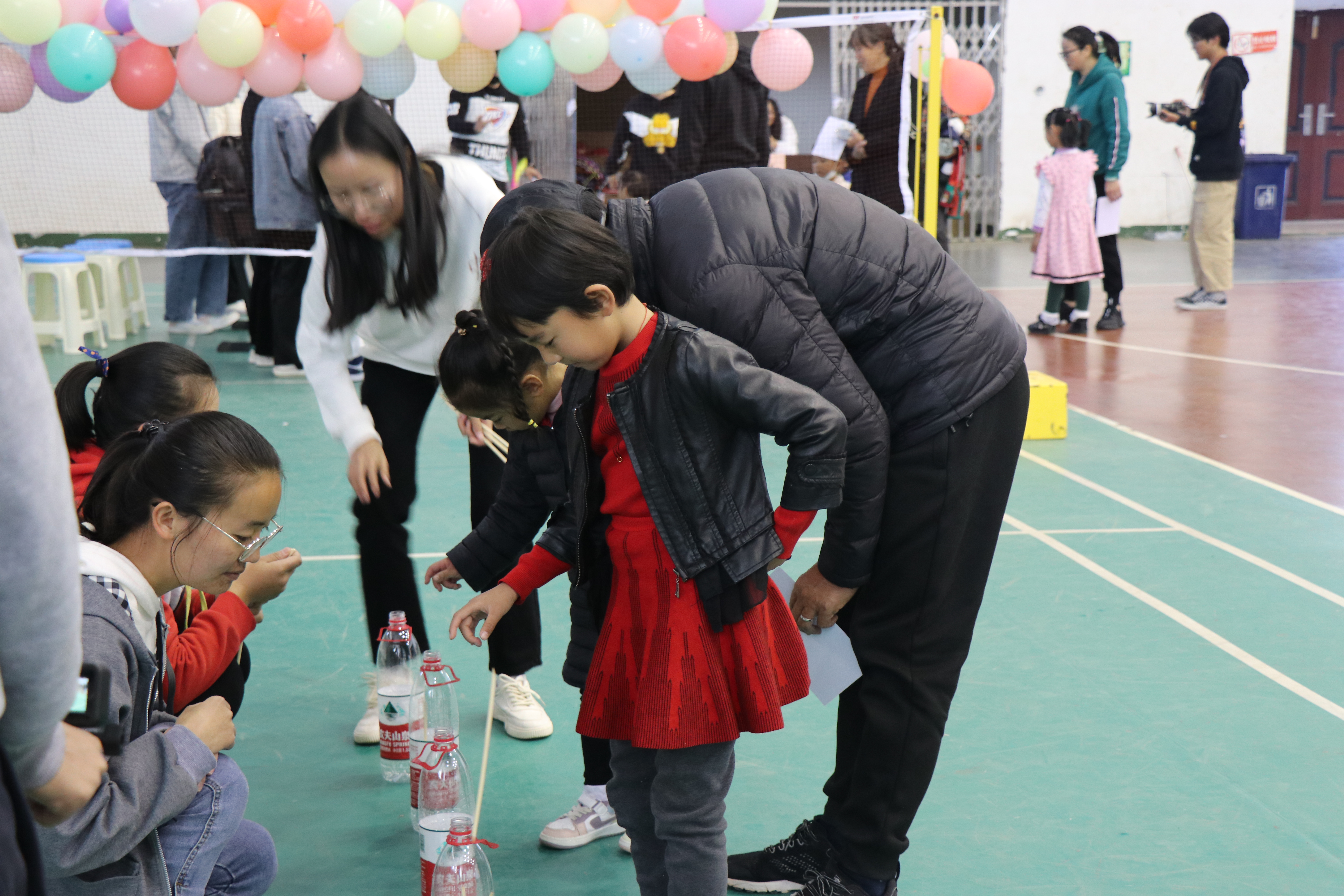 活动当日,工作人员和学生志愿者们,早早来到体育馆,精心布置起游园会场。经过大家努力,此时的体育馆盛装打扮,到处可见五彩的气球,精心设计的活动指示牌,回荡着欢快的乐曲,童趣十足,分外热闹。上午十时,活动准时开始,教职工们带着自己的子女们,感受着专属于亲子间的快乐和愉悦,暂放工作的压力,尽情享受着难能可贵的天伦之乐!此的游园活动包括亲子接力跳绳、比比谁的眼力好、添鼻子、抢椅子等9个亲子项目,内容丰富,精彩纷呈,让现场的孩子们嗨翻了天,也得到了广大教职工及家属大力点赞!