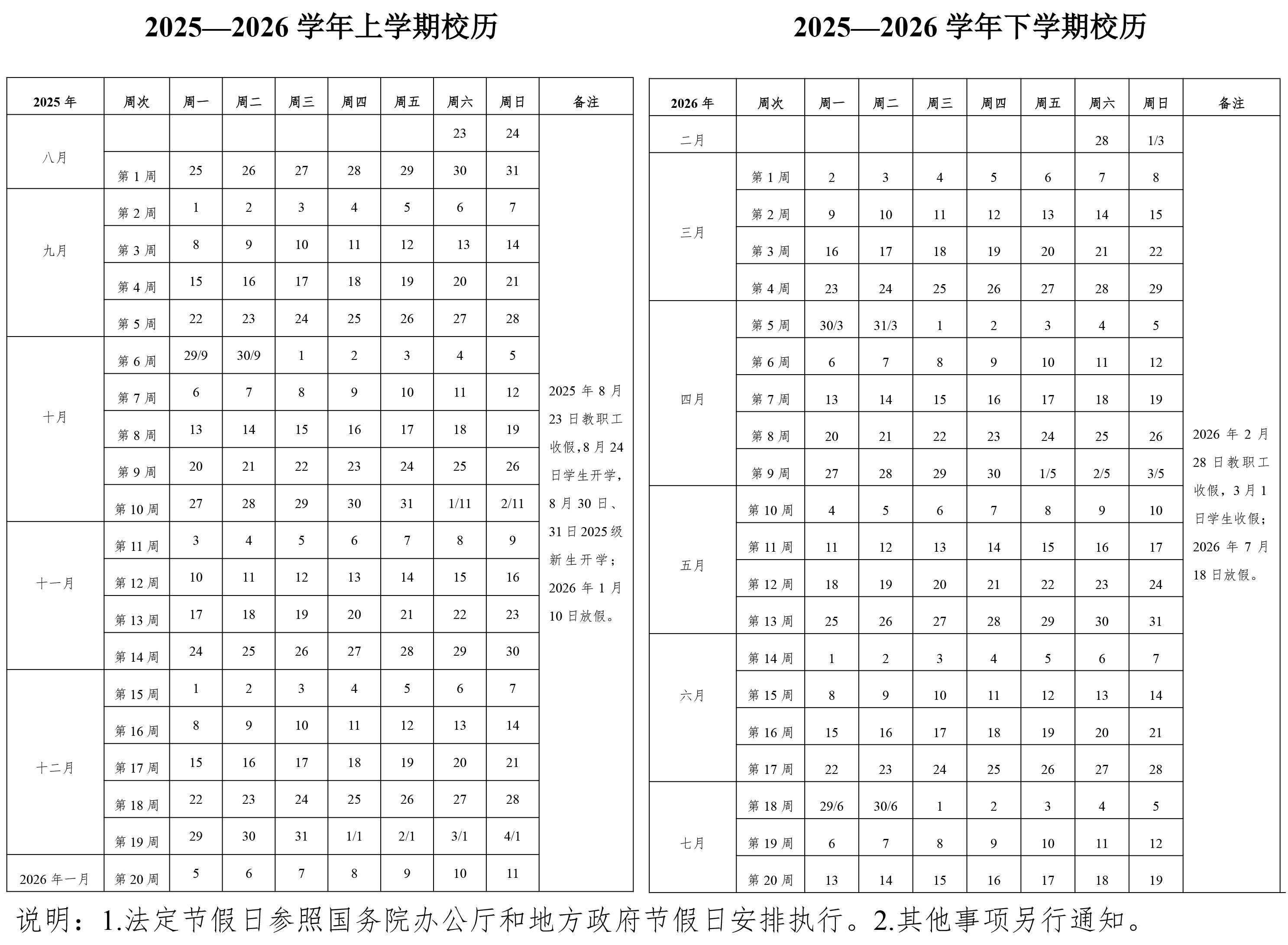 WilliamHill中文官方网站2025—2026学年校历