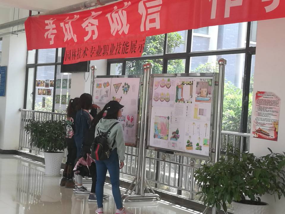 2017级园林技术专业根据学校和学院职教周活动安排,于2019年5月10日在被实验楼一楼大厅开展了专业技能展示活动,对外展示了园林景观设计、园林工程制图、园林效果图、园林计算机辅助制图等方面技能的展示。本次展示活动,为园林技术专业学生开展学习交流提供了平台,同时也是对园林专业学生专业技能的一次检阅。