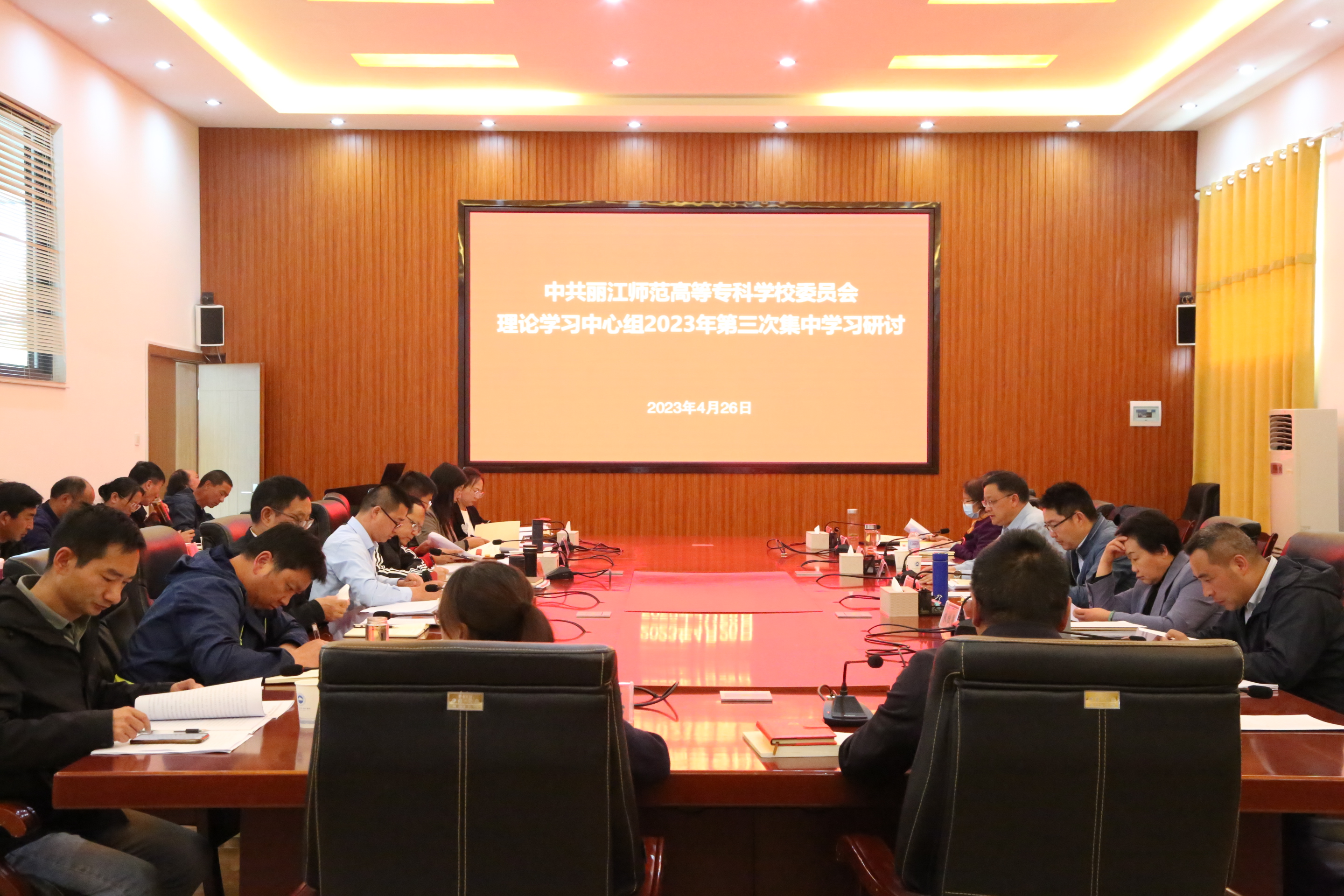 4月26日,学校举行党委理论学习中心组2023年第三次集中学习。党委书记毕天云在主持集中学习时强调,要深入学习贯彻习近平总书记重要讲话精神,高标准高质量开展主题教育;要大兴调查研究之风,切实解决学校突出问题;要坚定不移贯彻总体国家安全观,维护国家安全和社会稳定。