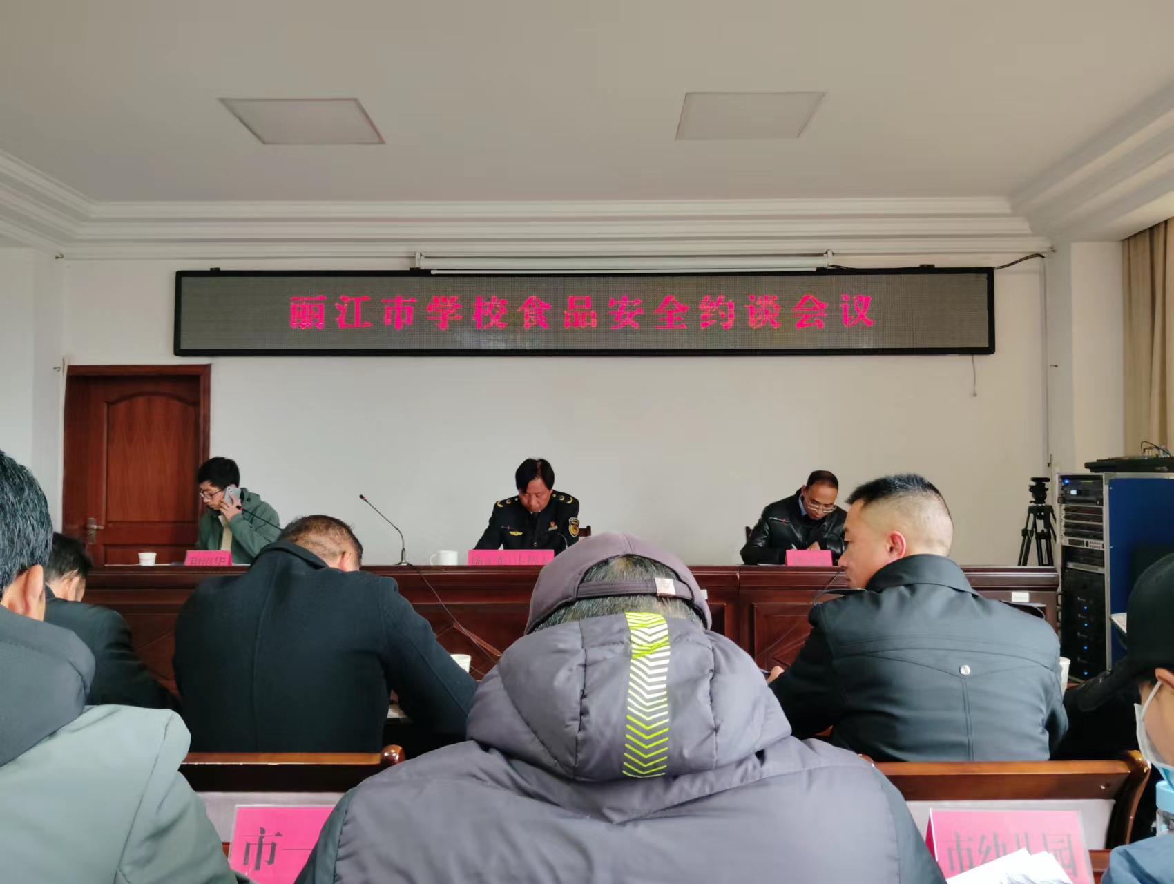 12月8日下午,后勤服务中心副主任王永红带领学校食品安全员及各食堂负责人参加由丽江市市场监督管理局及丽江市教育体育局组织的丽江市学校食品安全约谈会议。