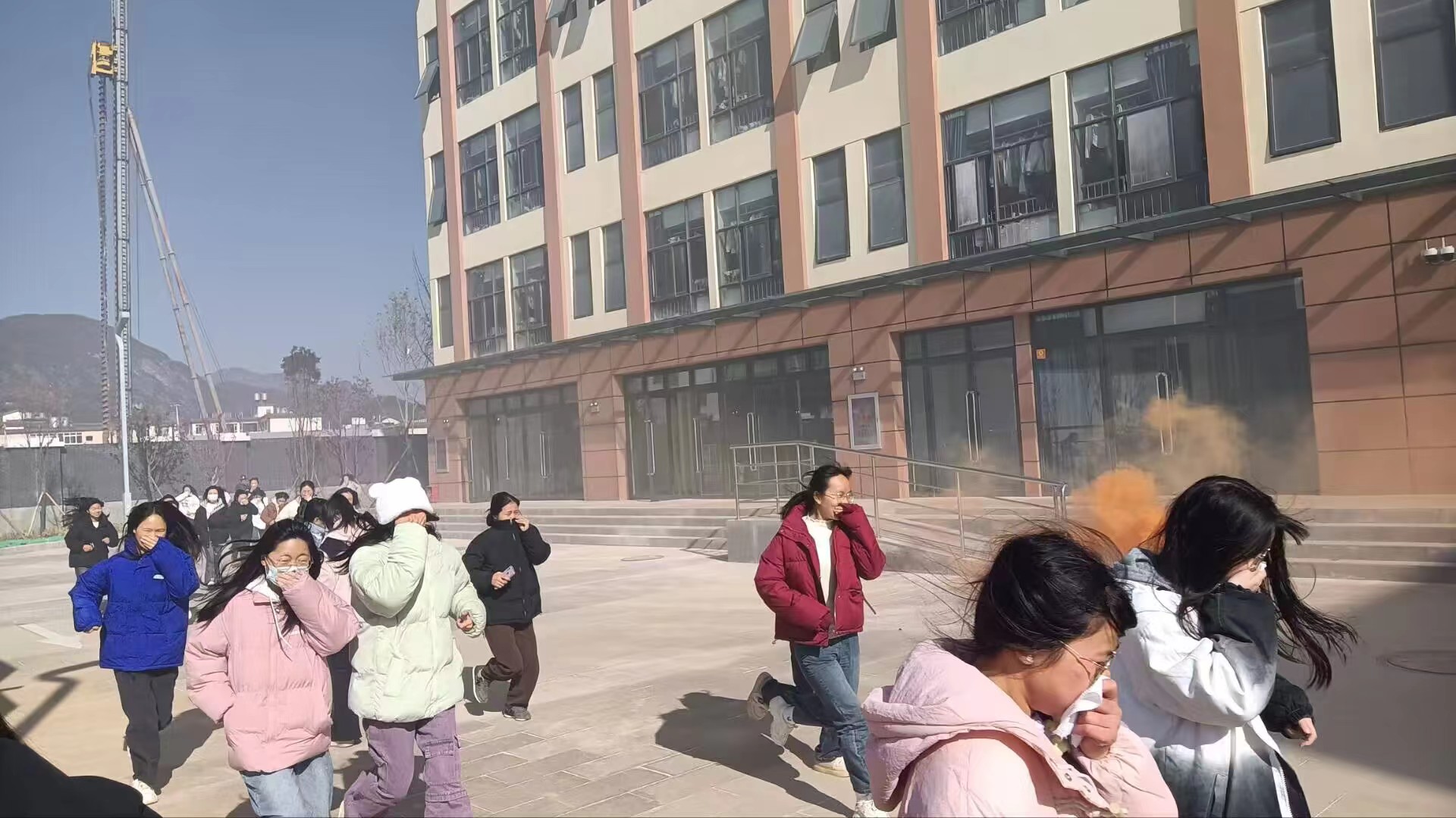 经学校前期的精心组织,周密安排,消防广播一响,烟雾弹点燃,各楼层负责老师组织学生进行疏散工作。全体师生沉着冷静、互相合作,一切行动听从指挥,按照学校制定的应急方案,圆满完成了此次紧急疏散活动。